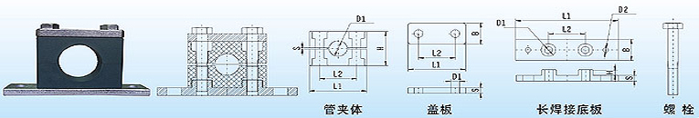 管夾體 | 蓋板 | 長焊接底板 | 螺栓 | ||||||||||||||