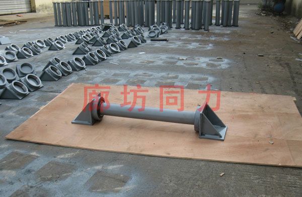 滾動(dòng)支座主要由滾動(dòng)體、單列圓錐滾子軸承、心軸、支承架等部件組成,工作原理是利用單列圓錐子軸承的滾動(dòng)來減少熱力管道軸向移動(dòng)的摩擦阻力,摩擦系數(shù)<0.04。它的主要特點(diǎn)是將老式的滑動(dòng)摩擦改為滾動(dòng)摩擦,從而大大降低了管道對(duì)固定支架的水平推力,能夠承受管道徑向位移所產(chǎn)生的徑向力。