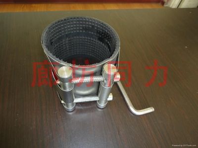 同力公司生產(chǎn)的管道搶修管卡包括兩個弧形框、弧形框連接端塊、弧形壓緊塊、密封橡膠墊、弧框橡膠墊、彈性萬向支撐組件、兩個柔性索具、光孔連接塊組件、螺孔連接塊組件和連接螺栓。搶修管卡適用于中高壓管道的大面積泄漏裂紋或穿孔的快速封堵,能夠適應(yīng)較大的管道偏差和變形、堵漏成功率高重量輕、安裝調(diào)節(jié)簡便、便于潛水員水下施工。