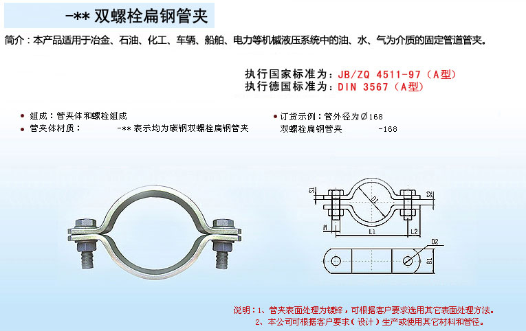 產品特點:扁鋼管夾安裝簡便快捷,是管道施工的優(yōu)良產品。