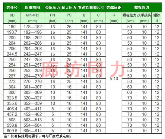 應用領域:應用于船舶、電廠、輸油、輸氣、給排水及污水處理等管道工程以及應用在油田采油廠、天然氣、煤氣、給排水管道緊急搶修作業(yè)等領域,使管道的連接施工更加方便、可靠、安全。