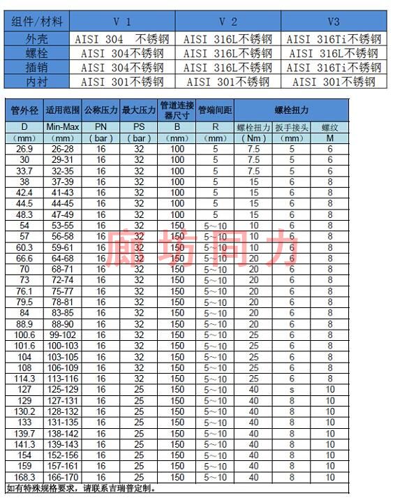 應(yīng)用領(lǐng)域:廣泛應(yīng)用于地面及地下輸油、輸氣、給排水中低壓管道的連接和修補(bǔ);環(huán)保設(shè)備、食品設(shè)備、涂裝設(shè)備等設(shè)備管線的快速連接和修補(bǔ);PE管線、不銹鋼管線、鍍鋅管線的低壓連接。
